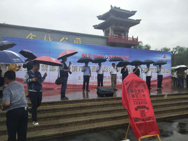 6月26日上午,第32个“国际禁毒日”,兰州市西固区禁毒委员会在金城公园门口举行了“都会城市 精致兰州”——创建全国禁毒示范城市暨西固区6·26国际禁毒日大型宣传活动,学校组织50名学生志愿者冒雨参加了活动。