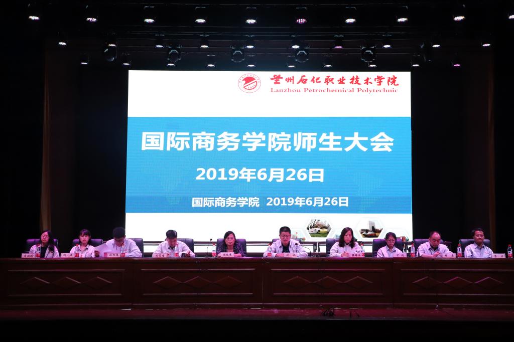 6月26日,国际商务学院在东区礼堂召开2018-2019-2学期期末考试师生动员大会,国际商务学院全体师生及班主任参加本次会议。