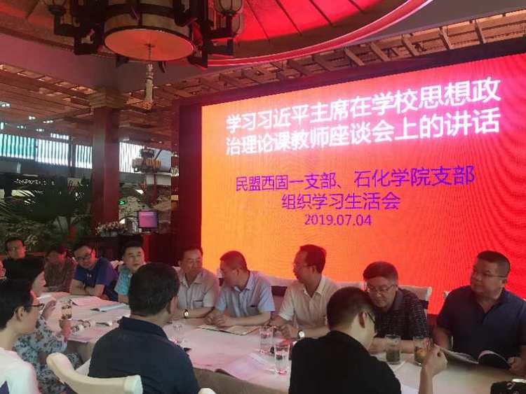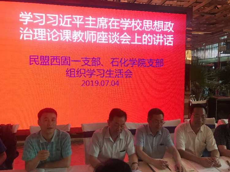 7月4日下午,民盟西固一支部和兰州石化学院支部联合举办组织学习生活会,专题学习3月18日习近平在学校思想政治理论课教师座谈会上的讲话精神。兰州石化职业技术学院的盟员全是高校教师,一支部的盟员是西固各中学的教师。