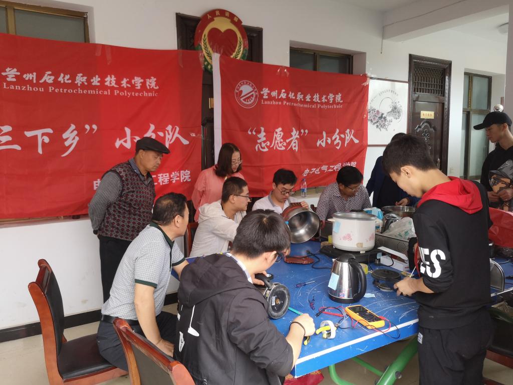 电子电气工程学院家电义务维修小分队自成立以来,认真开展暑期“三下乡”社会实践活动。始终以服务为宗旨,坚持维修的对象是家电,服务的对象是人,把家电维修定位于以人为本的服务。在新时代,小分队队员将继续认真学习贯彻习近平新时代中国特色社会主义思想,创新实践育人途径,提高专业知识,增强本领,勇于担当,努力成长为一代又一代具有“铁人精神”的石化工匠人才。