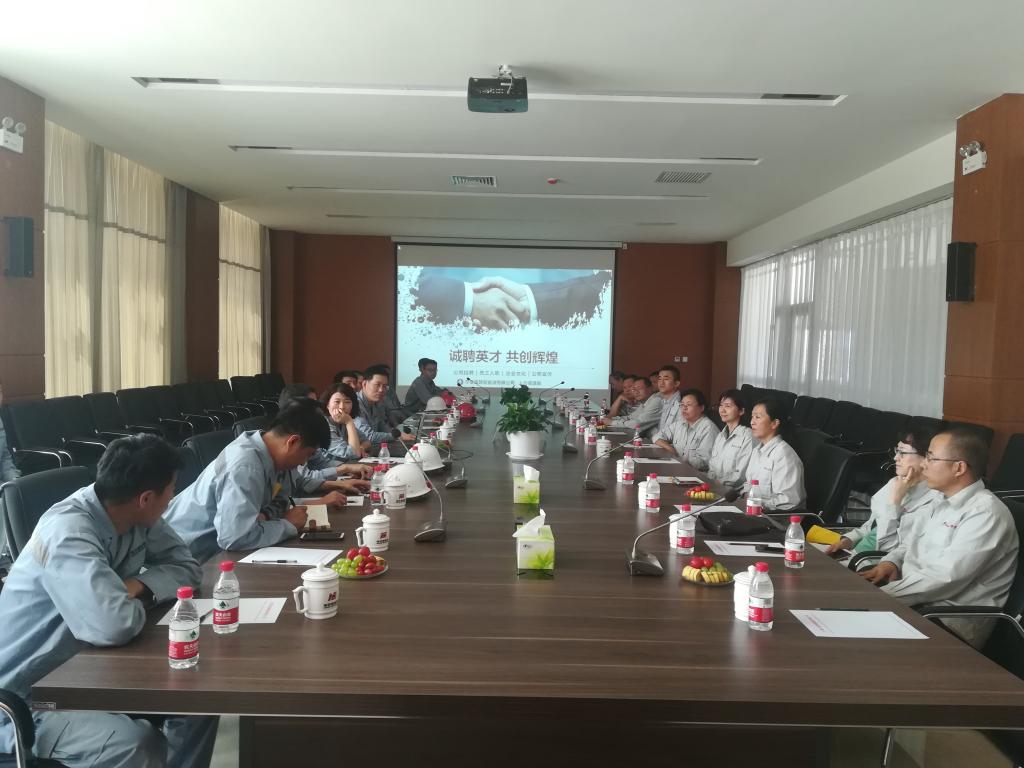 在宁夏金昱元化工集团有限公司,老师们受到了我校优秀校友暨现任公司董事长、总经理等的热情接待。座谈会上,公司总经理就公司近年来的发展历程、产业布局、员工培养、人才需求等向大家做了详细的讲述。他说,公司现有员工5000余人,尤以兰州石化学院的学生最优秀,这些学生的特点是吃苦耐劳、踏实肯专、立足岗位成才,多数已成为主操、班长、技术员、车间主任等中流砥柱的角色,这与学校的精准培养和老师们的悉心教育是分不开的,公司扩能升级后,我们还到贵校来招学生。交流中,冷宝林老师指出,我们此行目的就是为了深入企业锻炼学习企业的新设备、新技术、新工艺,将理论知识与实践技能深度融合,提升我们自身的实践能力,保障为学生讲的每一堂课都接地气,实现学校理论与企业技能的零对接,力争使学生一毕业即可上岗操作。会后,老师们深入企业各个装置进行了以生产设备、技术工艺为主的交流学习。