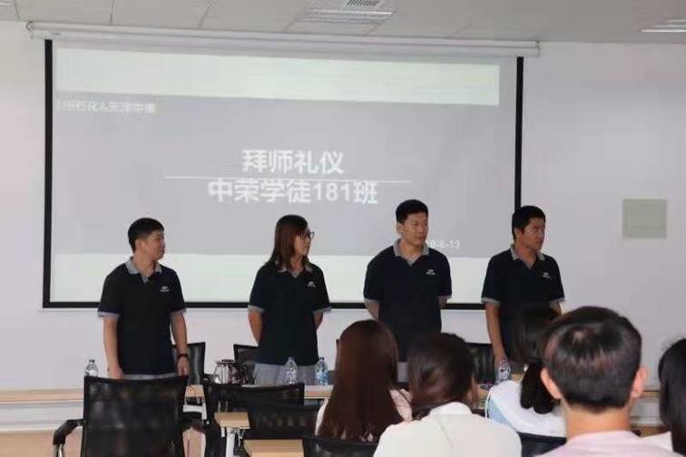 同学们在进行了简单休整后,于8月13日上午进行了新员工入职安全培训并在下午举行了现代学徒制中荣181班企业在岗培养开班仪式及拜师仪式。中荣集团人力资源副总监黄冬毅、天津中荣人力资源经理李惠、天津中荣管培学院导师李灵,王彦参加了仪式。