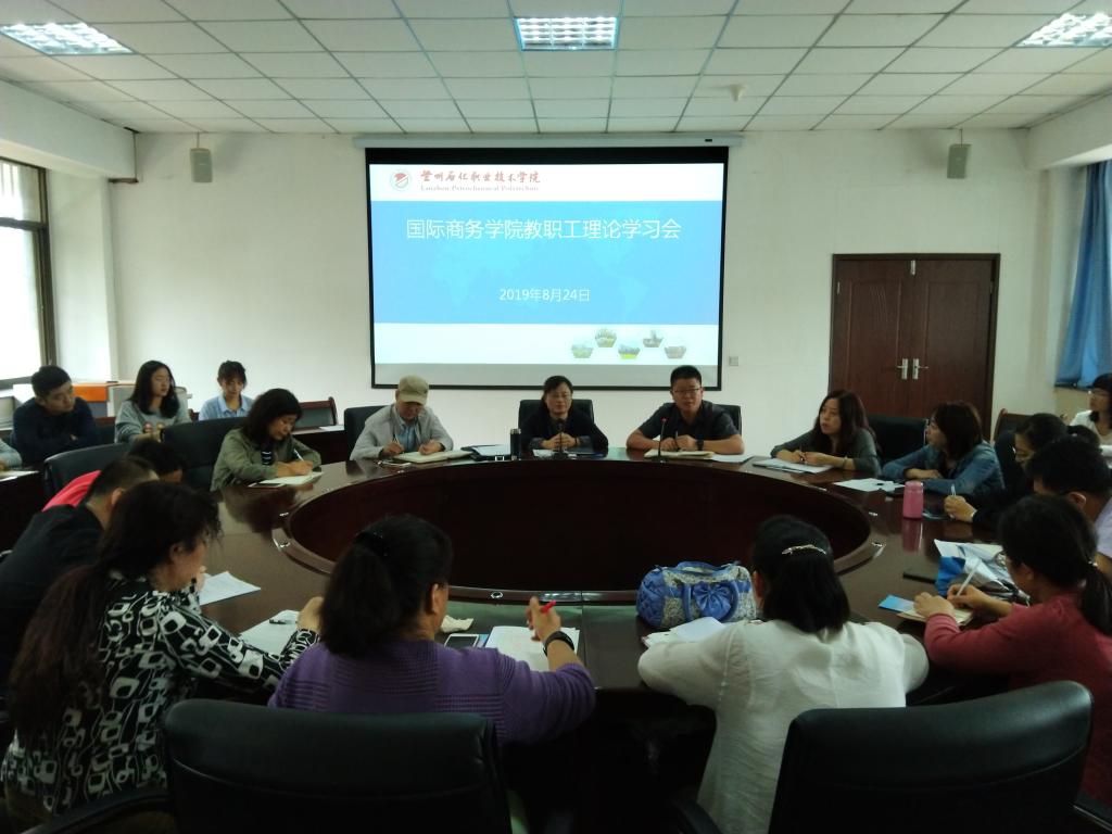 开学伊始,国际商务学院在主教学楼二楼圆桌会议室召开教职工理论学习会,专题学习习近平总书记在甘肃考察调研时重要讲话精神,国际商务学院党总支书记主持了学习会。