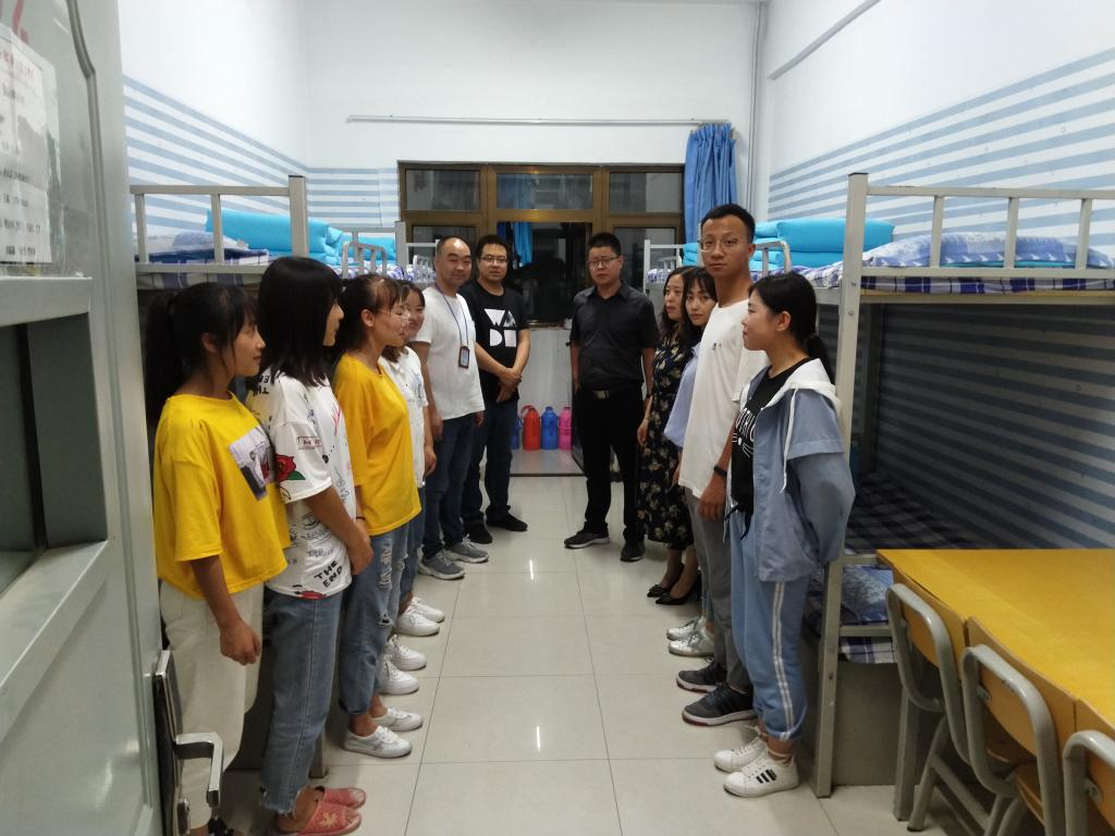 晚上,国际商务学院领导一行深入学生宿舍,看望返校学生,对宿舍安全卫生进行检查,并了解学生假期动态。同时,向同学们表达了新学期的愿望:新学期,新气象,好好学习,完成各项学习任务,取得更大的进步。