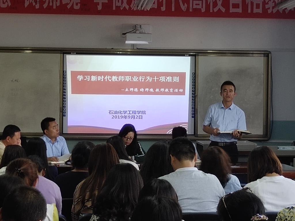 为了深入学习贯彻习近平新时代中国特色社会主义思想和党的十九大精神,全面贯彻落实全国和全省教育大会精神,石油化学工程学院于近日开展以“庆祝新中国七十华诞,弘扬尊师重教社会风尚”为主题的教师教育系列活动。
