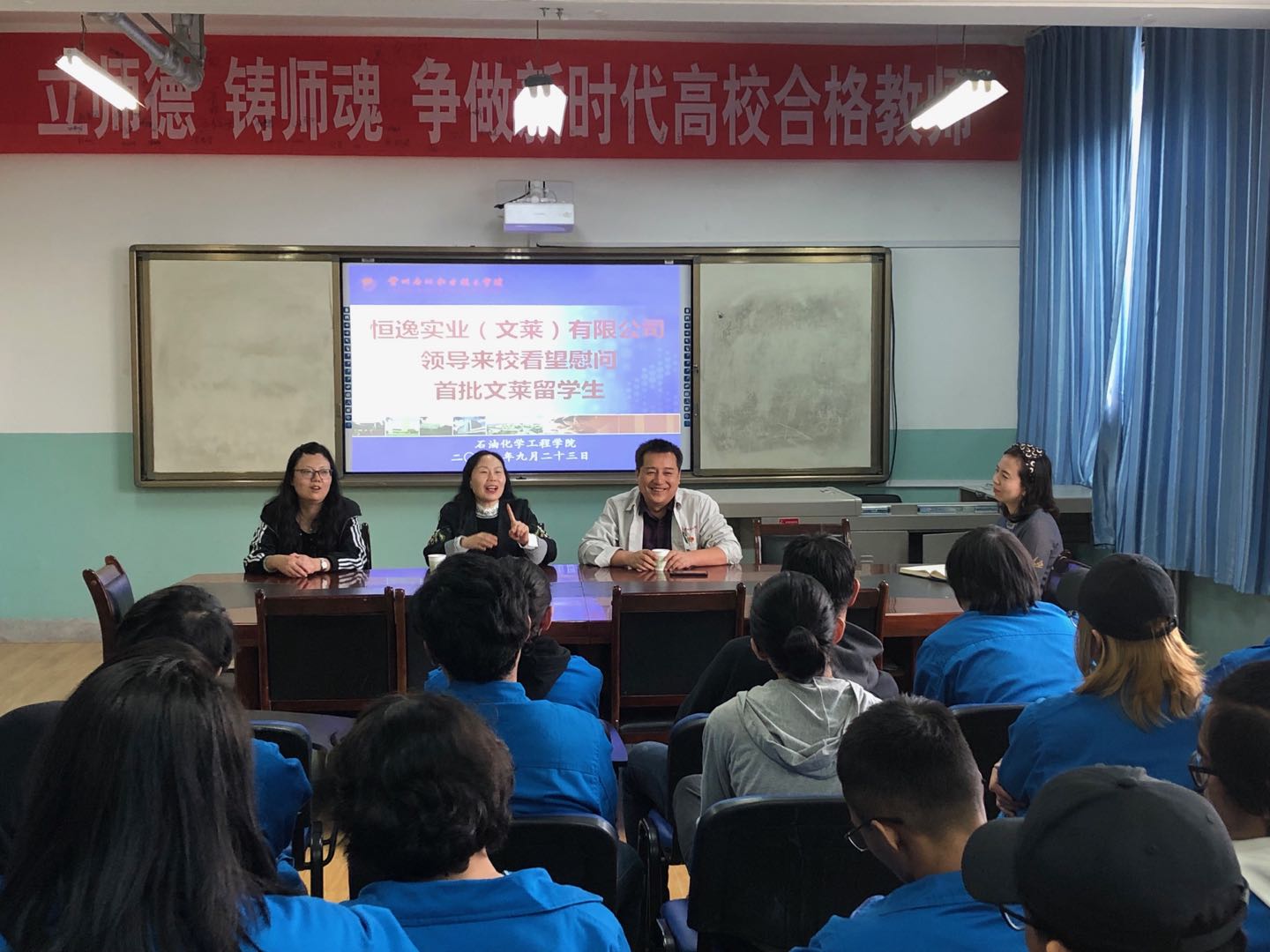 9月23日下午,恒逸实业(文莱)有限公司人力资源部副部长赵辅珍一行来校,看望慰问正在我校举行培训的首批31名文莱留学生学员。石油化学工程学院院长李薇、国际交流处处长杨喜存参加了座谈会。