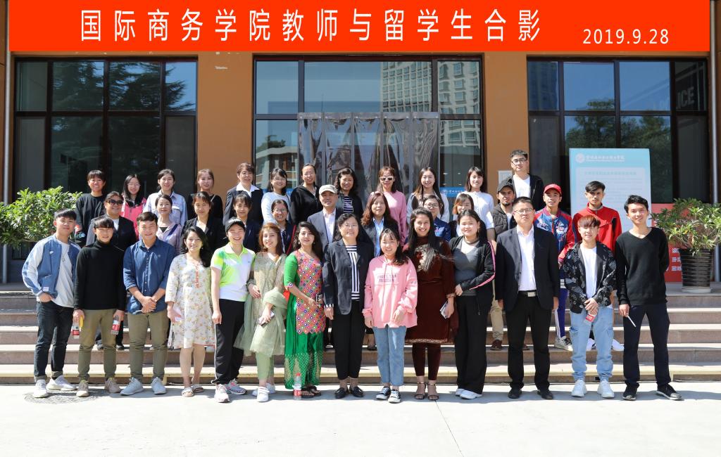 会后,国际商务学院与留学生集体合影。