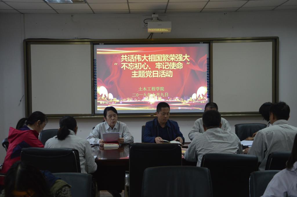 近日,为深入学习习近平总书记新时代中国特色社会主义思想,加强革命传统教育,增强全体党员教师的责任意识和爱国情怀,土木工程学院在东主教二楼召开“共话伟大祖国繁荣强大--不忘初心、牢记使命”主题党日活动,土木工程学院领导班子成员、全体党员教职工参加了会议。