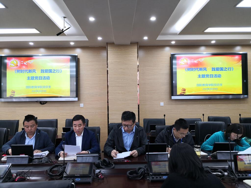 10月9日下午,国际教育学院党总支在主教楼六楼同声传译实训室开展了以“树时代新风,践爱国之行”为主题的爱国主义教育主题党日活动。活动由国际教育学院党总支书记主持,全体教工党员参加了活动。