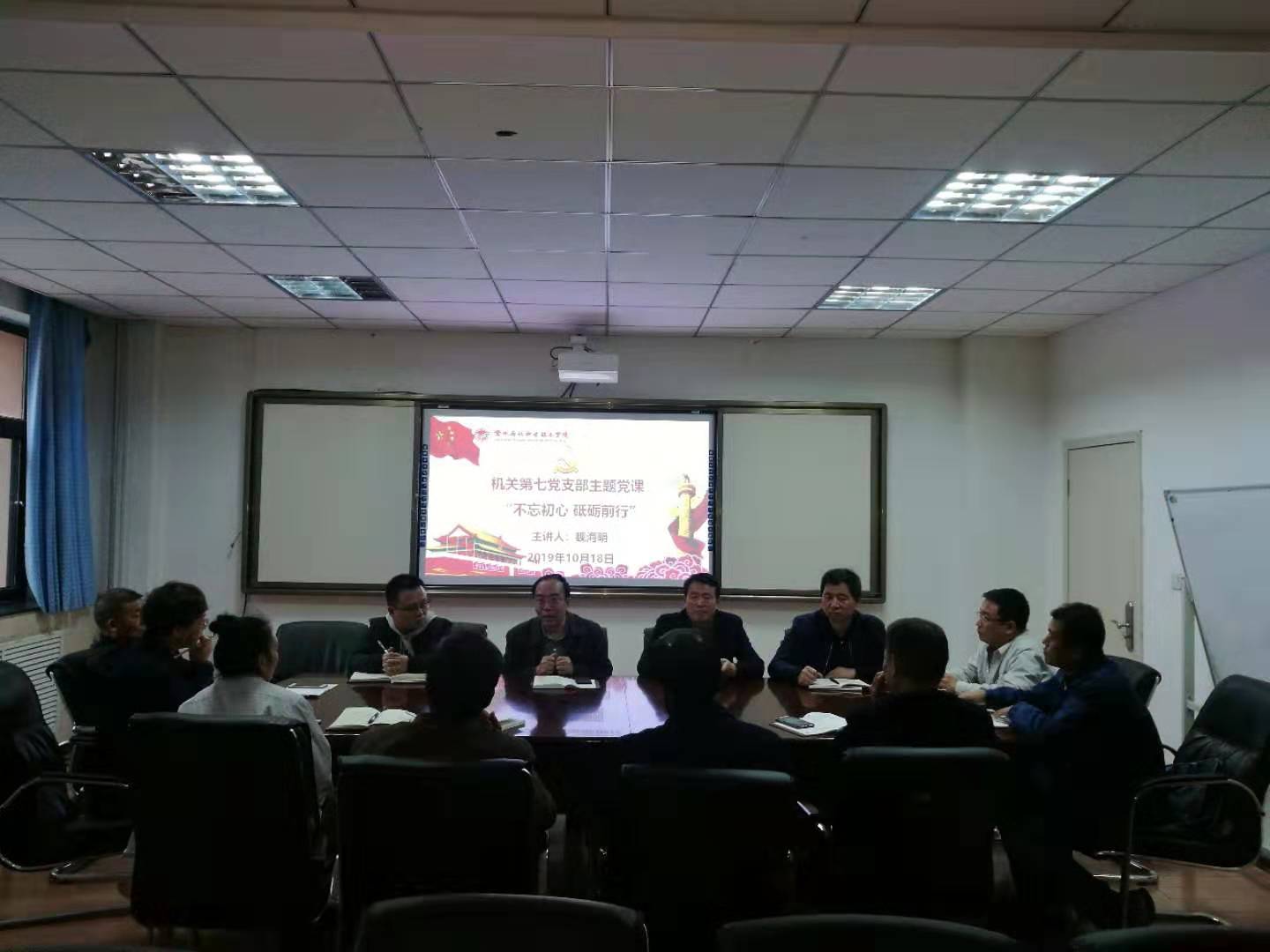 10月18日下午,副校长魏海明在为机关第七党支部全体党员作了题为“不忘初心 砥砺前行”的专题党课。机关第七党支部全体党员参加了本次党课学习。党课由党支部书记主持。