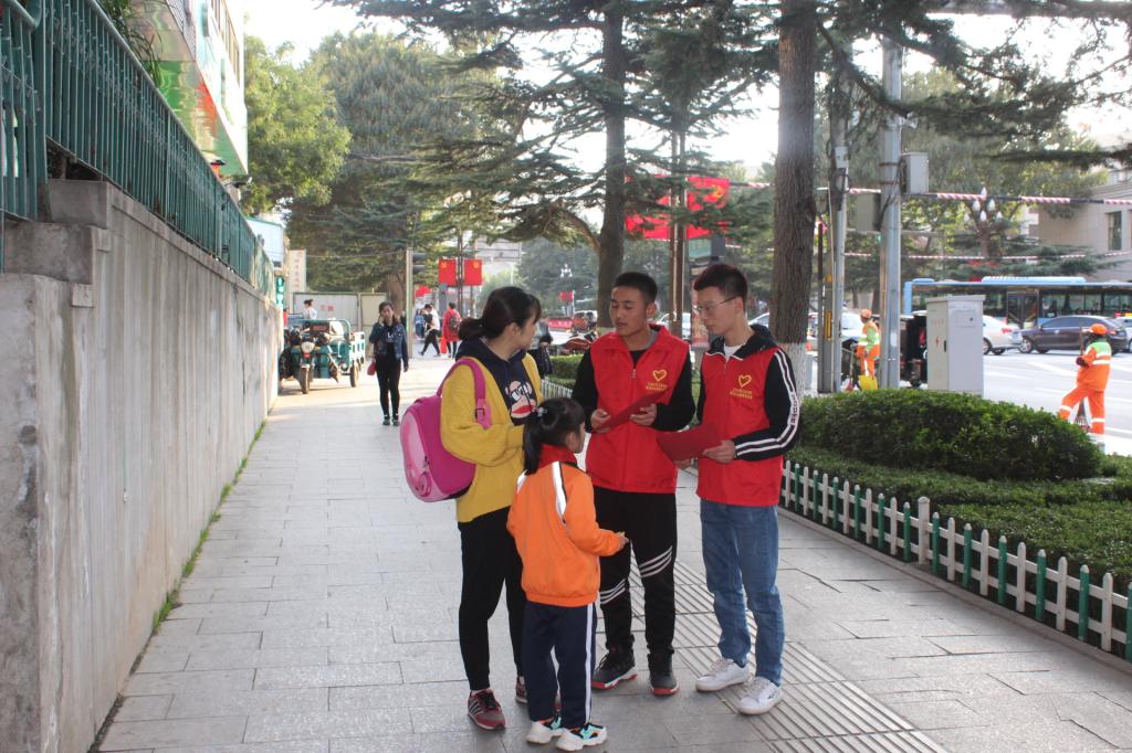 为了倡导行人文明出行,使交通有序进行。石油化学工程学院爱溢石化青年志愿者协会于近日开展“交通志愿安全相伴”志愿者活动,志愿者协会成员于西固公园十字路口协助交警指挥交通。