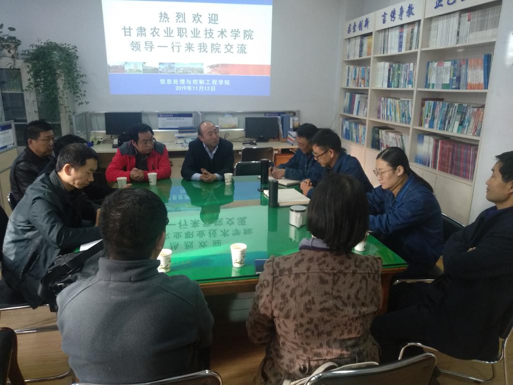 11月13日下午,甘肃农业职业技术学院信息工程系系主任杨多海一行8人来我校信息处理与控制工程学院进行参观交流,信息处理与控制工程学院领导热情接待和座谈交流,学院教师代表参加了座谈会。