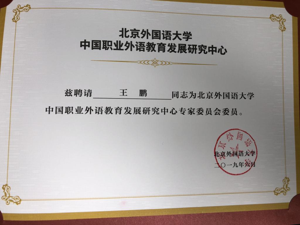 王鹏受聘为中国职业外语教育发展研究中心专家委员会委员