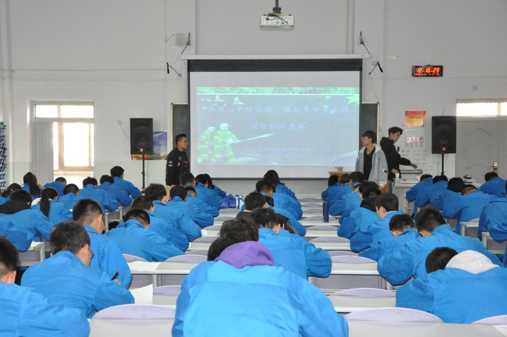 为了提高在校学生的消防安全意识,增强学生对消防安全知识的了解,石油化学工程学院于近日在西阶三教室开展“消防安全知识竞赛”,19级部分学生参加了本次竞赛。