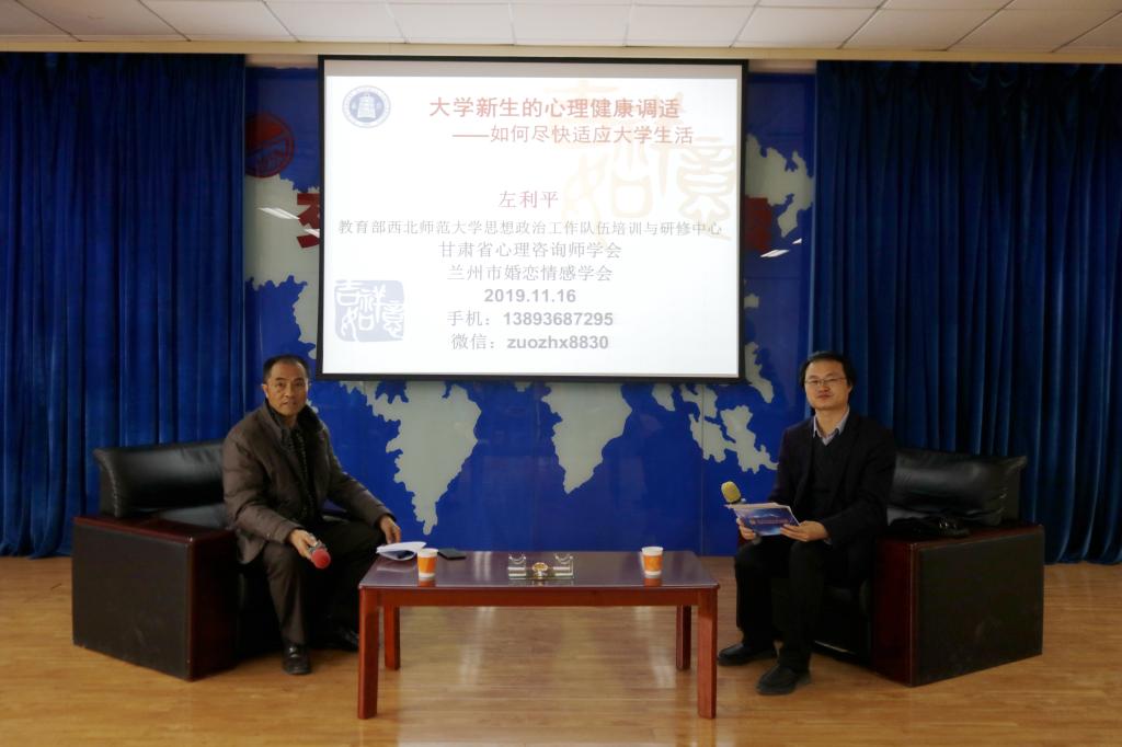 为进一步加强我校学生心理健康教育,引导青年学生以正确的方法来处理问题,形成正确的世界观、人生观、价值观。校团委于11月19日下午,在三中心九楼沙龙室举办了第90期校园文化沙龙活动。教育部西北师范大学高校思想政治工作队伍培训与研修中心培训部主任、兰州大学营养与健康研究中心兼职研究员、国家二级心理咨询师、《甘肃心理健康研究》副主编、国家二级心理咨询师左利平应邀担任主讲嘉宾,来自全校十个学院的150余名学生代表参加了活动。