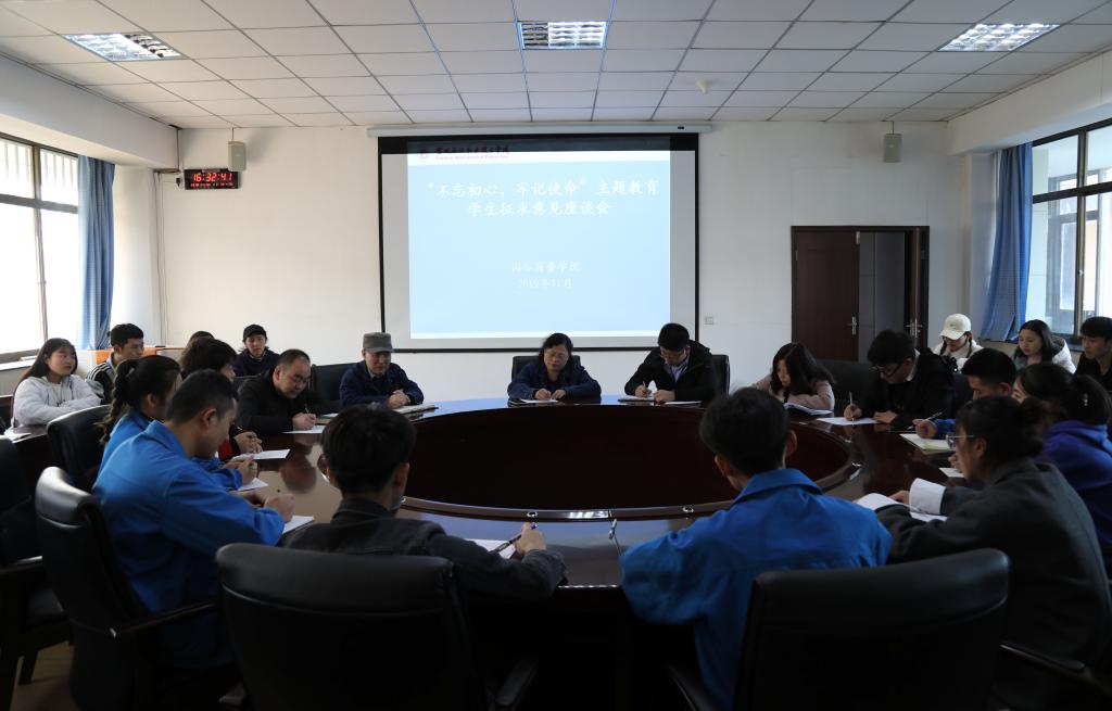 近日,国际商务学院在主教楼二楼圆桌会议室组织召开“不忘初心、牢记使命”主题教学生征求意见育座谈会,学院领导、辅导员、教学秘书及17、18、19级学生代表参加,会议由国际商务学院党总支书记刘江主持。
