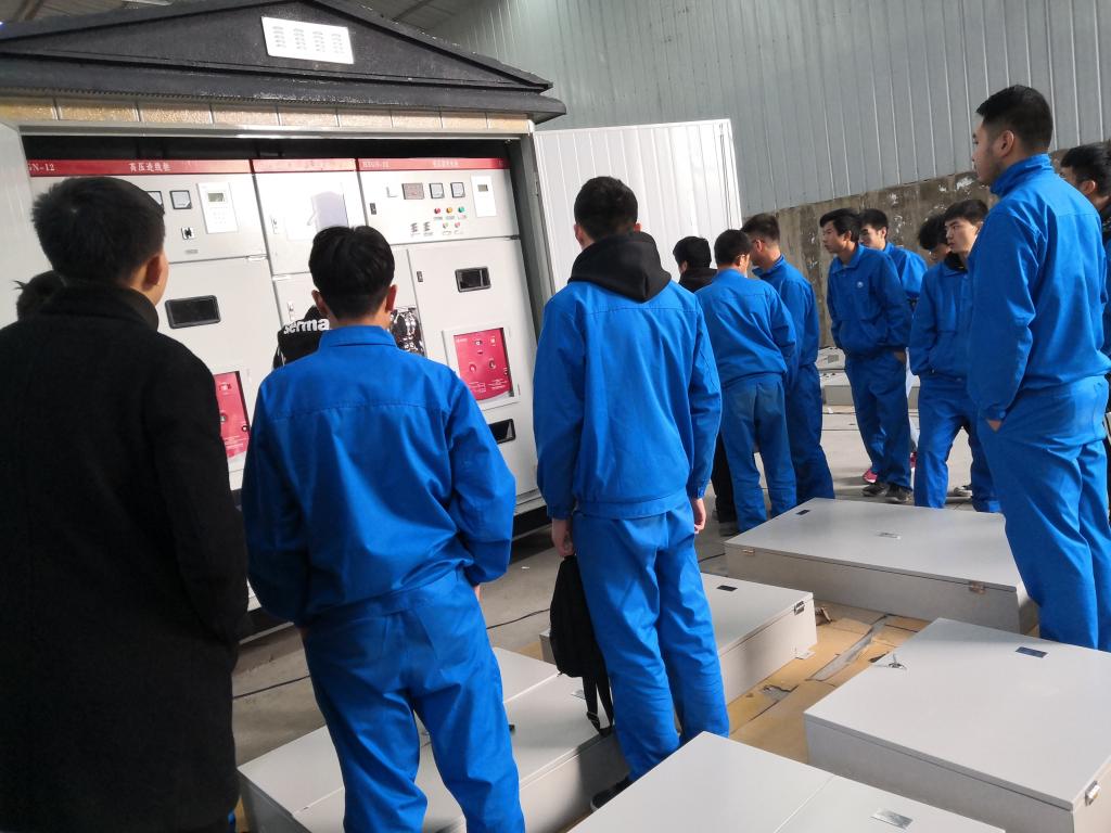 魏孔贞首先带领同学们来到位于彭家坪产业园的鸿烨电力设备生产厂区参观学习,公司董事长沙建兵给同学们介绍了企业情况,就任家庄10KV配电室工程进行了详细的讲解。随后同学们观摩了鸿烨电力公司高低压成套配电设备的生产组装流程。同学们认真听着现场讲解,仔细观察,积极提问。参观结束后,魏孔贞老师作了总结,他对此次参观学习所取得的收获给予肯定,认为本次参观学习对同学们认识所学专业有很大帮助,对老师的教学也有很大的帮助。同时,也对甘肃鸿烨电力高科技术有限公司为学生提供观摩实践教学深表感谢,表示今后将继续加强校企合作与交流互动,实现产学融合快速发展。