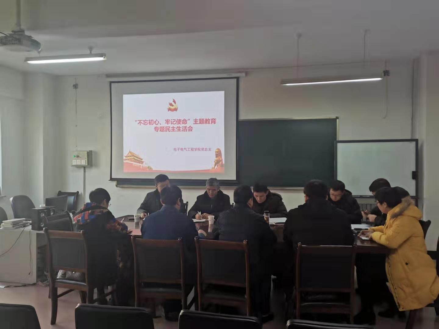 12月7日上午,电子电气工程学院组织召开“不忘初心、牢记使命”主题教育专题民主生活会。学校组织部常务副部长杨雄、电子电气工程学院学院领导班子和学院老师代表参加了会议。