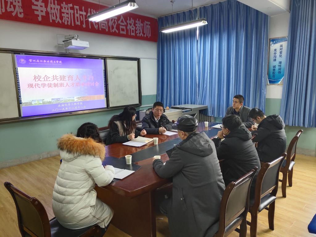 12月12日上午,万华化学集团股份有限公司人力资源部经理操礼刚应邀来到石油化学工程学院,就石油化工技术专业万华现代学徒制班人才培养与我校进行交流,石油化工学院领导及专业骨干教师参加了交流会。