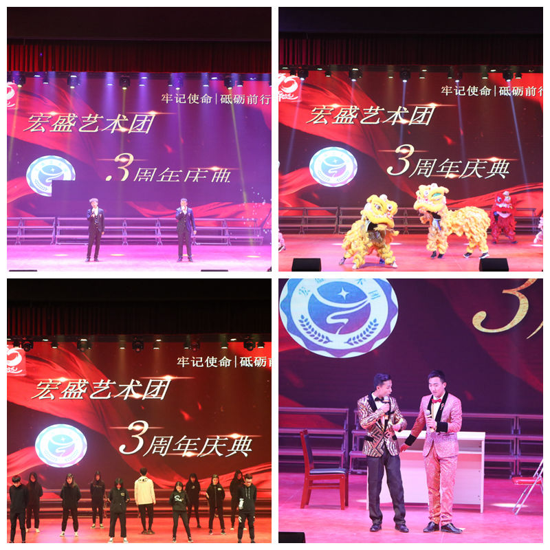 12月13日19时在东区礼堂举办庆祝宏盛艺术团成立三周年暨预备役十周年庆典活动 ,参加此次活动的嘉宾有机械工程学院办公室副主任、辅导员及19级全体学生。