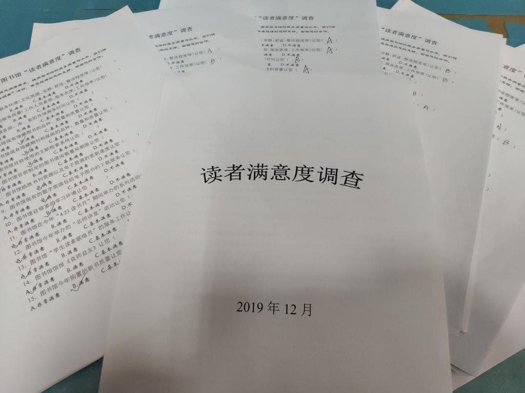 近日,按照年度工作计划和质量管理要求,学校图书馆在学生读者联络部的全力配合下,顺利完成了今年的“读者满意度调查”活动。