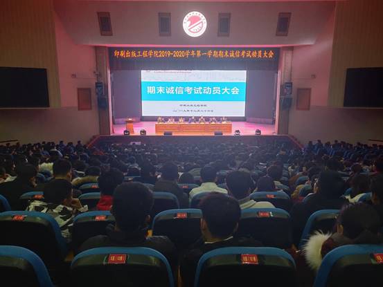 12月26日晚,印刷出版工程学院召开2019-2020学年第一学期期末诚信考试动员大会。学院领导、政治辅导员、团总支书记、各班班主任及全院学生参加了大会。