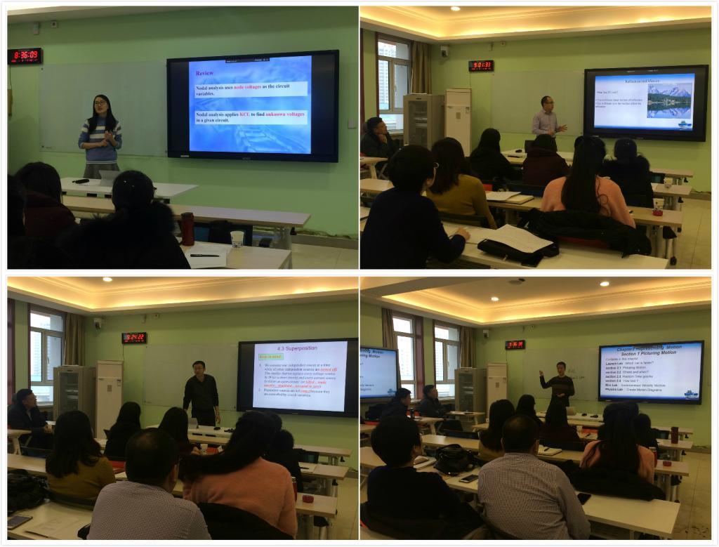 为了对下学期留学生的英语教学做准备,同时测评青年教师英语教学能力,2019 年1月3日,电子电气工程学院在五中心507开展教师英语讲课比赛。参加本次讲课比赛的有电子电气工程学院学院领导及学院青年教师,学校国际教育学院和对外交流处的几位老师担任本次比赛的评委。