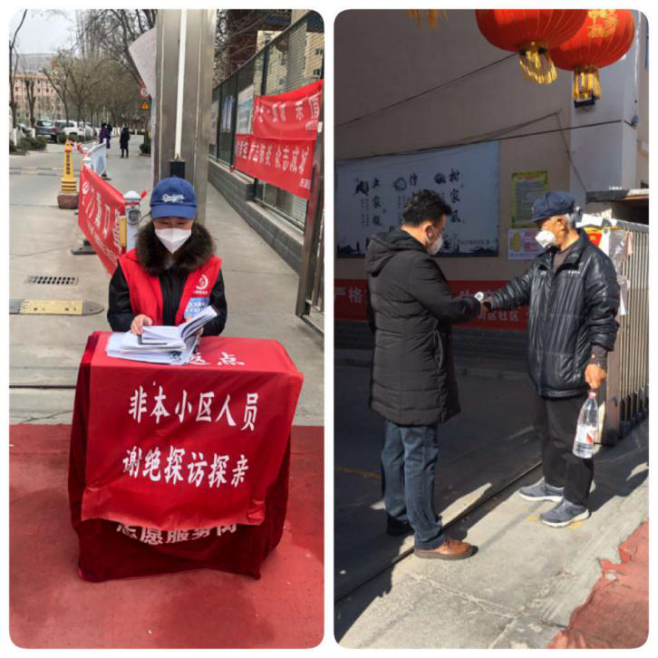 教工党员张胜男积极参加所在社区疫情防控志愿服务活动,协助居住小区做好居民测量体温、出入人员和车辆登记、排查及疫情防控知识宣传等工作。在西固区福利路街道兰化25街区社区党员先锋岗前,参加疫情防控志愿活动的教工党员周龙德认真为居民测量体温,普及疫情防控知识,提醒外出居民做好个人防护。