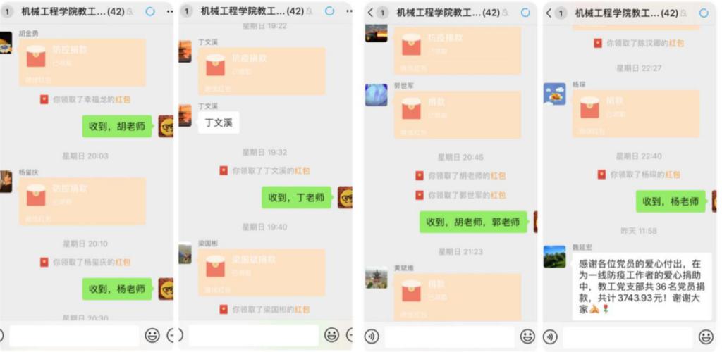 在机械工程学院党总支书记的带领下,支部党员响应党中央的号召,积极踊跃开展多种形式的捐款,为支持新冠肺炎疫情防控工作奉献爱心。截至目前,机械工程学院党总支共收到教工党支部36人捐款,金额3743.93元。