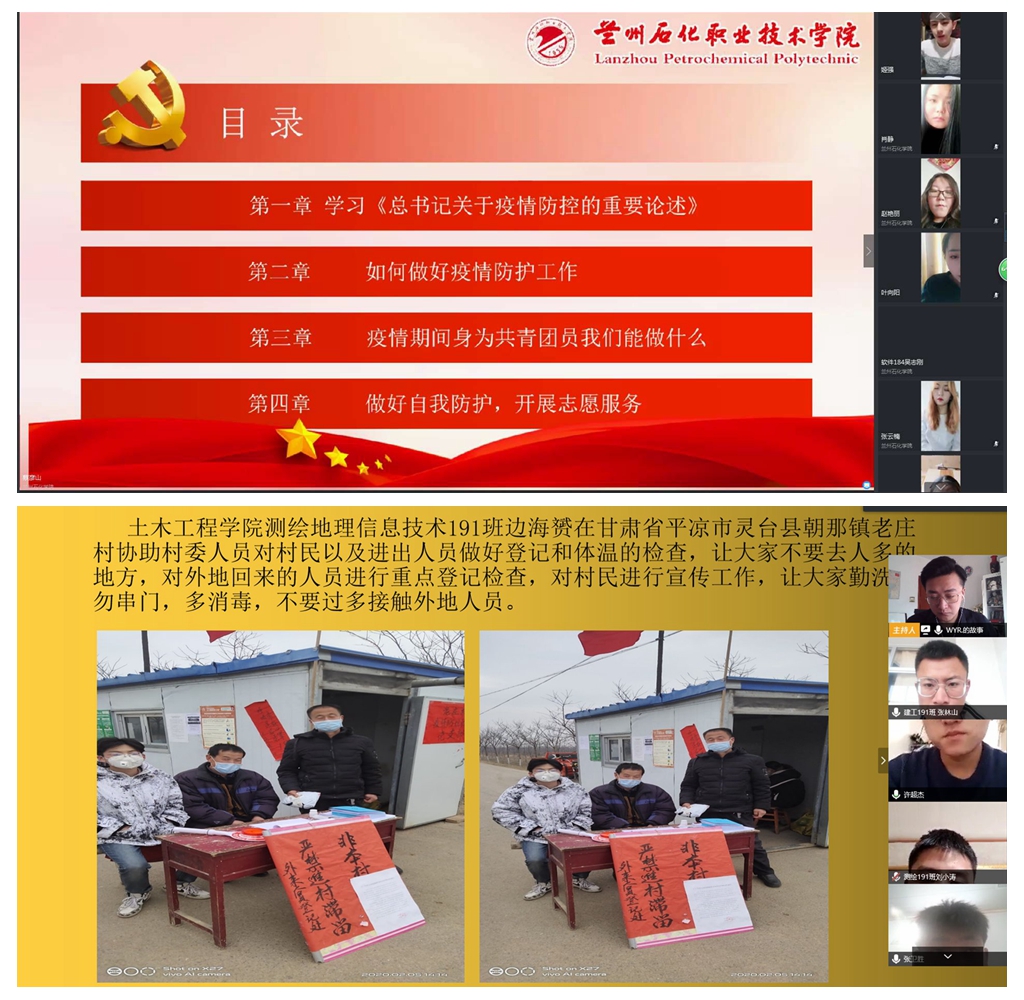 为切实引导教育全校团员青年进一步增强疫情防控责任、意识,积极抗击疫情,团结带领青年学生在学校党委的坚强领导下凝心聚力共同打赢疫情防控阻击战中贡献青春力量。3月8日晚,学校团委组织开展“齐心协力·共抗疫情”线上主题团日活动。在各二级学院团总支、团支部、全体团员青年的精心组织策划下,开展了形式多样、内容丰富的线上主题团日活动。