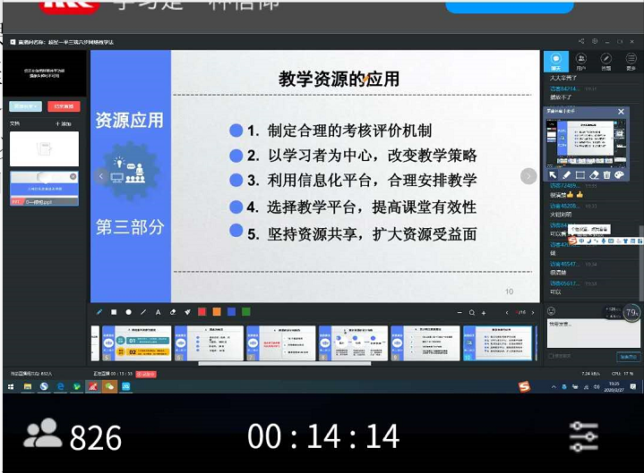 我院全面启动线上教学已经一周,如何顺利并有效的开展线上教学和学习也是师生们共同关心的热点话题,围绕这一主题各班召开班会进行了研讨。班会中,同学们针对各类APP的使用、网络学习的优缺点、学习中遇到的问题进行了交流,班主任及时解决了一些同学遇到的问题,也分享了一些网络课程学习的方法。并提出希望同学们高度重视线上学习,严格要求自己,做好学习规划,努力做到学习时间不延迟,学习内容不减少,学习质量不下降,杜绝懒惰和拖延,以激昂的斗志和饱满的热情投身于新学期各项学习活动当中。代课老师们也积极参加平台培训,反复测试平台使用效果,现已熟练掌握了平台的各种功能和使用技巧;同时结合课程特点,探索与线上教学相适应的全过程考核方式,保质保量完成教学工作。