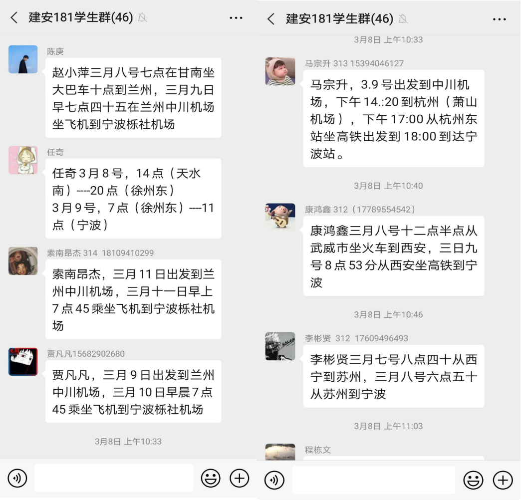 在学院和企业双方研究共同决定下,现代学徒制班于3月初陆续分批次奔赴企业顶岗实习,其中建安学徒制共44人,目前38人已经安全到达企业学习。学院在做好学生返岗实习工作的同时,重点加强学生的疫情的防控,提高学生安全意识,持续做好思想政治教育工作,牢固树立了安全工作的思想,切实保护学生返岗途中的疫情安全工作。为此,学校领导班子和班主任魏孔贞老师在学生返岗出发前对每位同学的行程安排进行详细的询问与登记,并及时与学生、企业和家长保持紧密联系,确保学生安全学习。