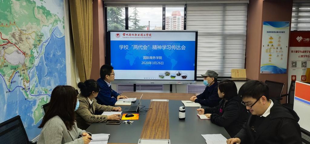 3月26日下午,国际商务学院组织全院教职工网络视频会,传达学习学校“两代会”精神。学院党总支书记刘江主持,会议采用线上线下相结合的方式。