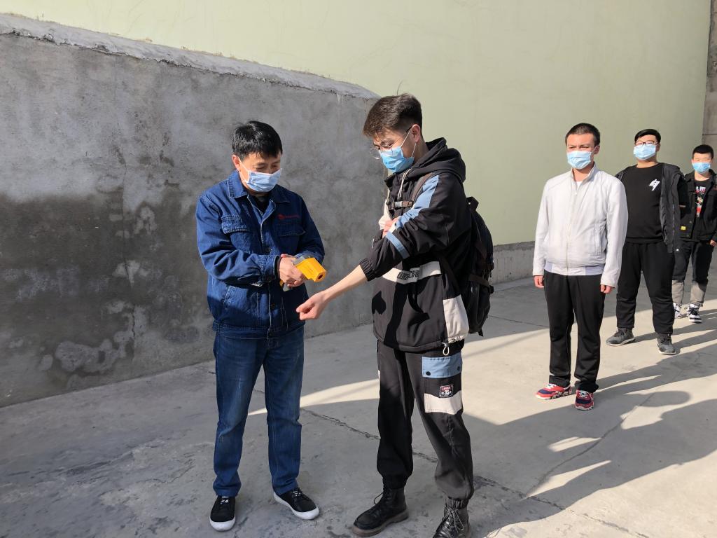 现场学生排队检测体温