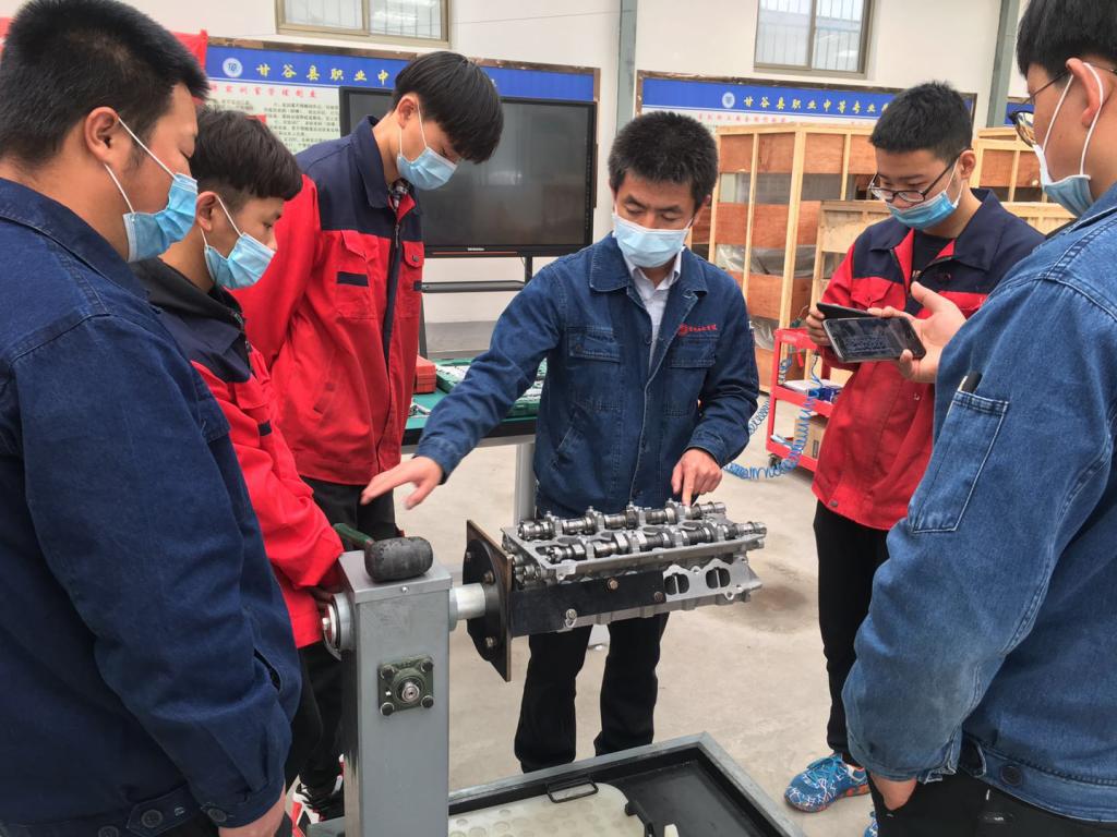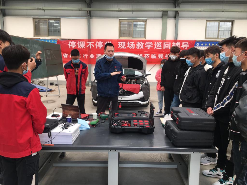 4月12日,教学巡回辅导组在定西市瑞驰汽修厂开展“停课不停学,现场教学”巡回辅导。本次巡回辅导采取现场教学和钉钉同步直播教学。为了在上课的同时做好疫情防控工作,同学们来到现场后排队进行体温检测,待一切正常后开始进入教学场地准备上课。