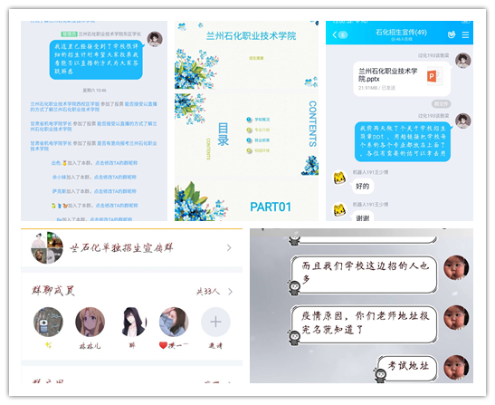 线下招生宣传主要以各地方校领导为首要沟通对象,并迅速扩展到各个学生班级。凭借兰州石化职业技术学院公认的影响力,配合印刷精美、信息全面的招生简章,很快便形成了宣传、咨询、答疑、意向的高效流程,很多同学当场便明确了报考我校的决定。线上招生宣传主要依托各大网络平台,充分利用学生课余时间,通过网络宣讲会、一对一答疑、传递式宣讲等灵活方式,全面宣传我校招生政策。宣传小组成员不遗余力,只为招生宣传点面俱全。