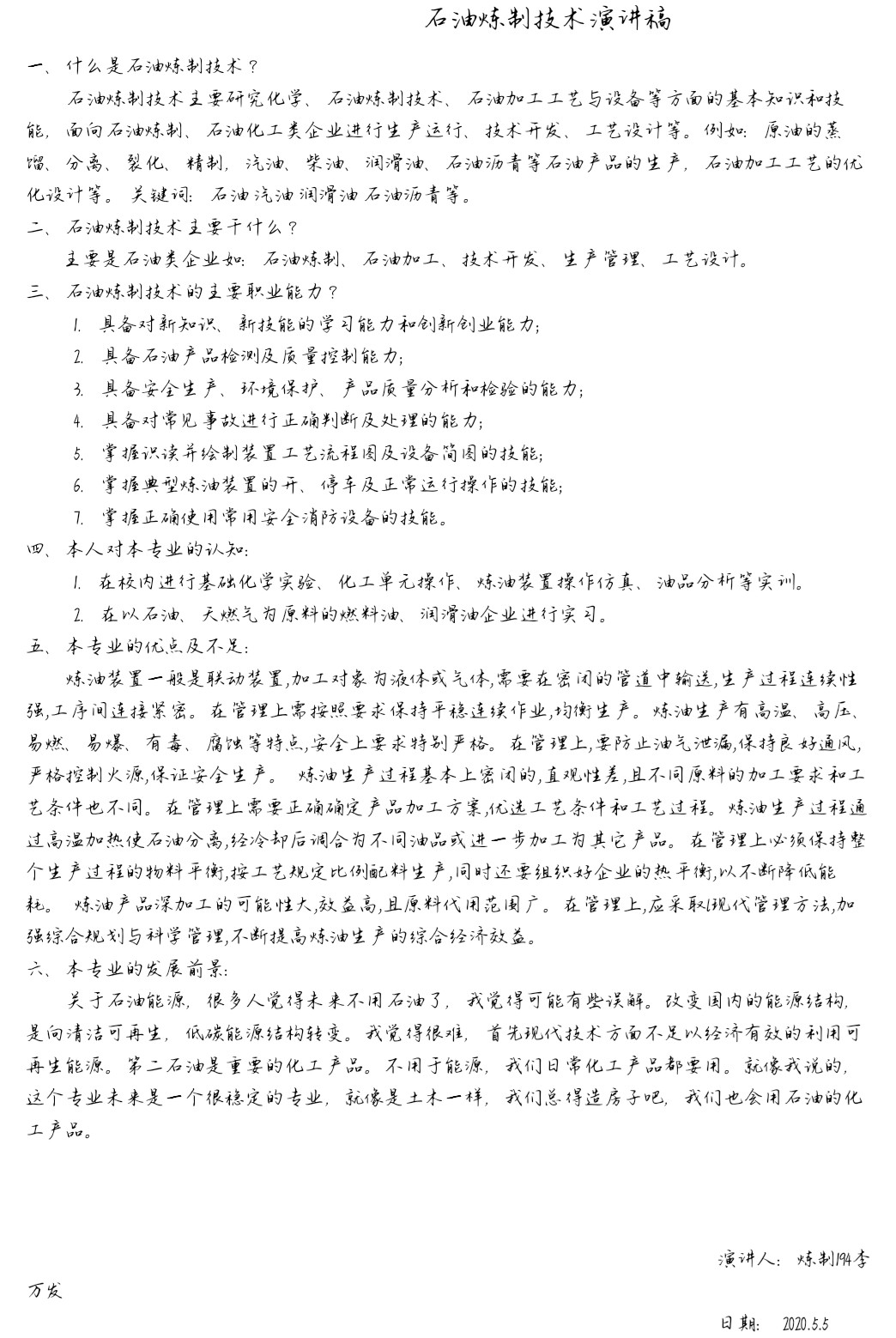 为强化石化学子对自身专业有更进一步的认识,巩固专业技能,提高专业素质,树立“术业有专攻”的思想,促进学院学风建设。石油化学工程学院于近日依托互联网平台,开展以“我的专业我来说”为主题的说专业比赛活动。18级、19级部分学生参加。