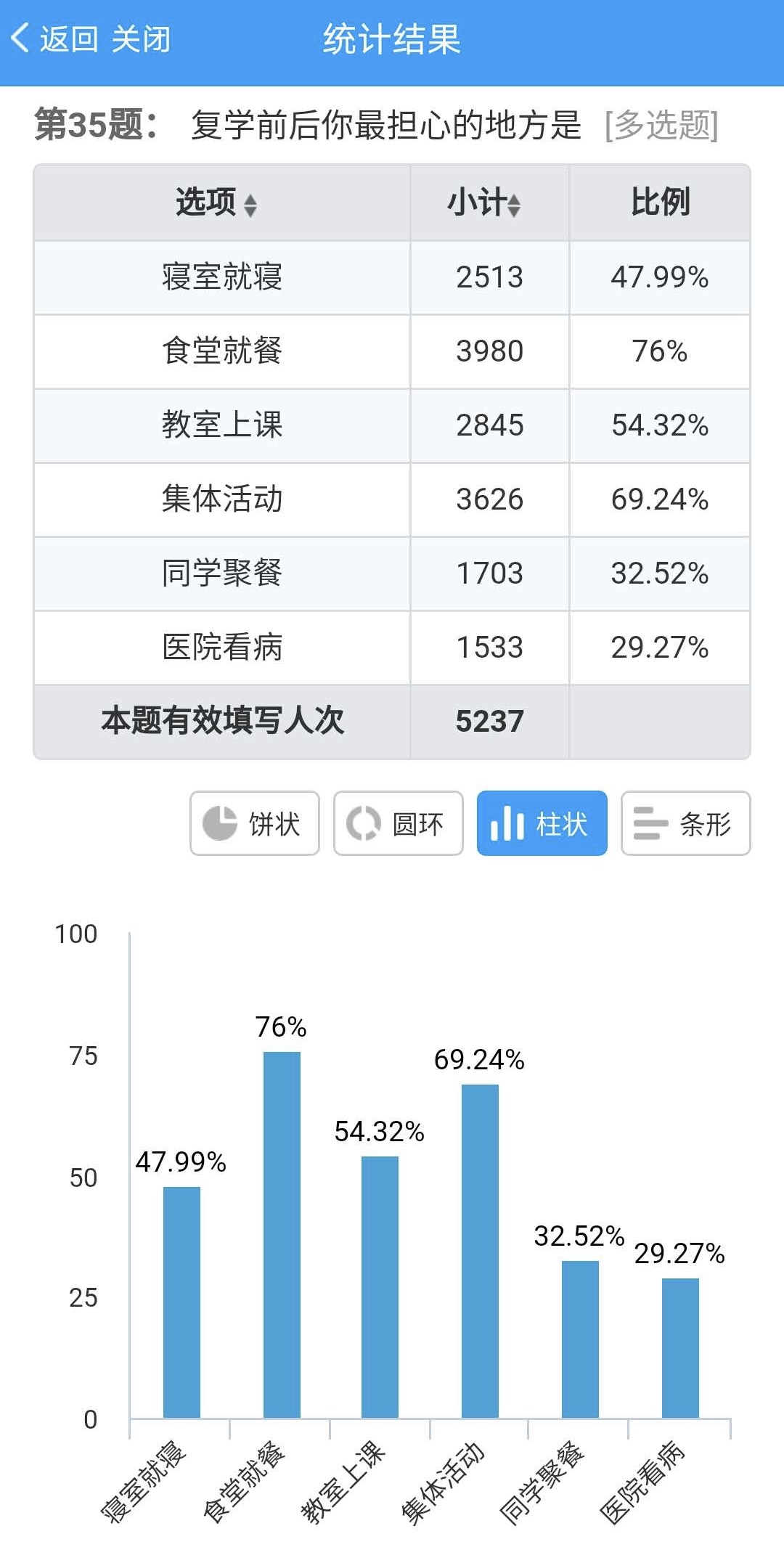 调查结果显示,大部分学生能够以积极主动的心态和自我觉察的行动力应对本次突发疫情。在疫情之下,学生们更懂得珍惜学习生活,珍爱生命。同时,在近三个月的防疫期间,部分同学也表现出了不同程度的心理和情绪问题,需要班主任、辅导员、任课教师持续不断地关注学生的学习和生活,及时和学生沟通,解决同学们遇到问题。学校心理中心也将继续做好疫情期间学生心理疏导工作。