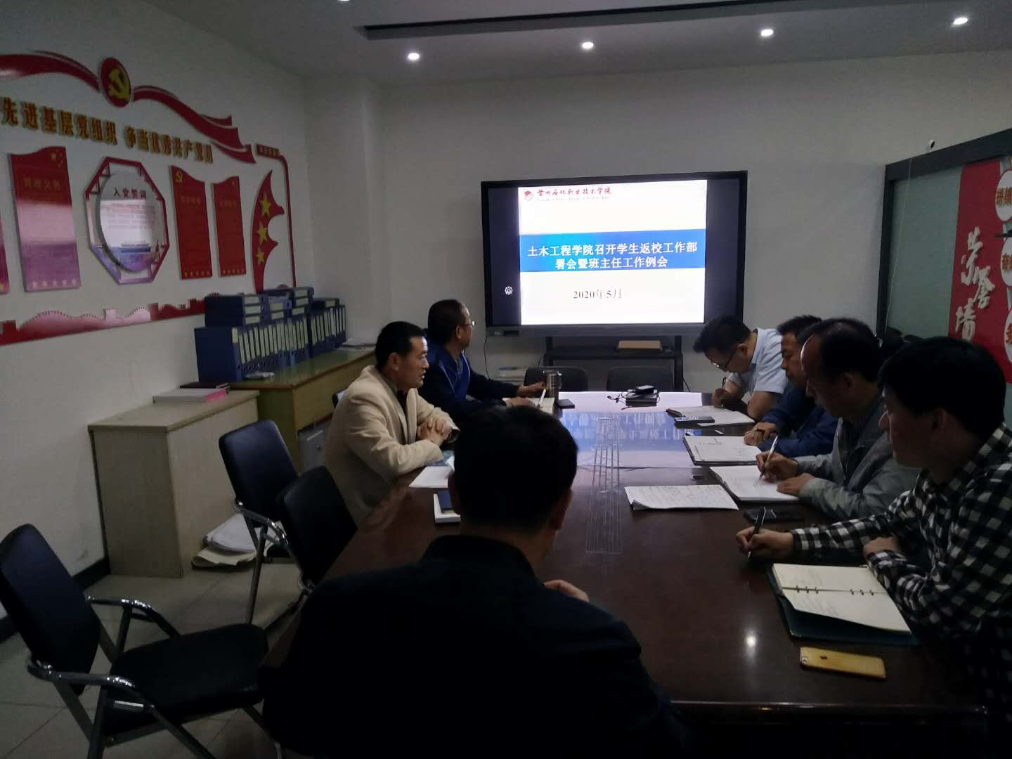 为坚决贯彻教育厅和学校关于新型冠状肺炎疫情防控工作要求,积极应对新型冠状肺炎疫情,做好学生返校工作,切实保障学生平安返校和校园稳定安全,按照《学院新型冠状肺炎疫情防控工作实施方案》和《学院新型冠状肺炎疫情防控期间学生管理工作预案》的要求,学院积极开展相关工作,制定学生返校工作方案,召开学生返校工作安排部署会暨班主任工作例会。