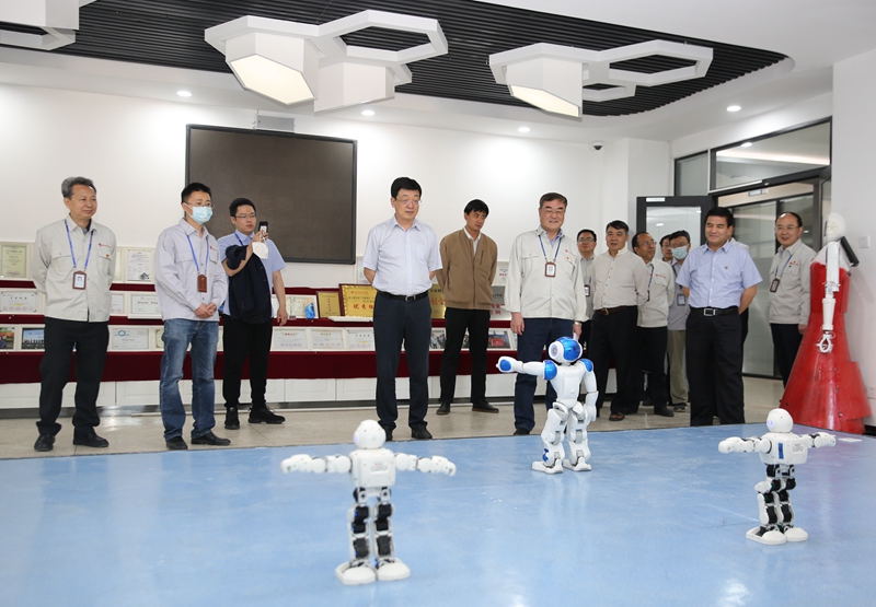 谢俐副司长一行首先考察了我校第五工业中心化工生产安全实训基地、智能制作实训中心、智能机器人研发中心、新能源汽车实训基地等,了解工业中心的实训设备和科研产品,观看了学生的实际操作,关心询问正在参加实训同学们的返校复学情况,了解了我校相关专业学生的就业方向,并现场体验了智能机器人设备的功能。