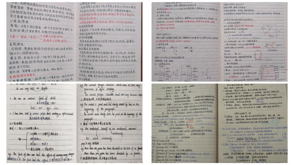 本次评选大赛以班级为单位,参赛作品有课堂笔记、知识点笔记、学业辅导笔记、专业课读书笔记等与学习相关的笔记,同学们的笔记形式多样,有的使用各种记号笔对重点难点进行标注,主题明确、字迹工整、重点突出;有的运用电脑手机等工具对知识进行整理概括,内容简洁、条理清晰。除此之外,同学们还将课上学习内容进行了课外扩展,对笔记进行了进一步的补充,扩大知识储备。