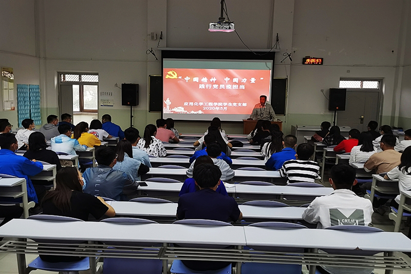 5月24日下午,应用化学工程学院学生党支部书记以“中国精神、中国力量”践行党员防疫担当为主题,给18级返校学生党员上了一堂党课。