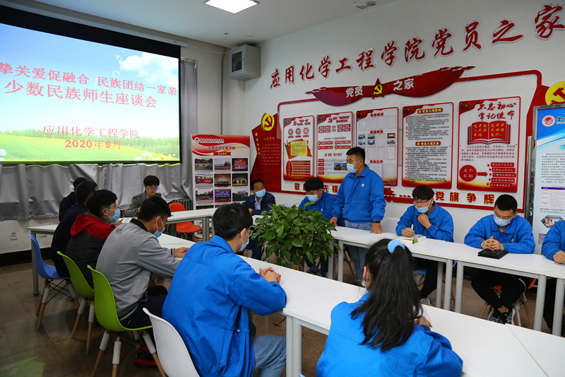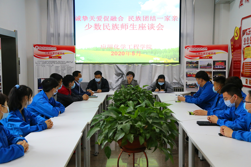 5月26日中午,应用化学工程学院在第四工业中心二楼会议室召开“诚挚关爱促融合、民族团结一家亲 ”少数民族师生座谈会。院领导、辅导员以及2名少数民族教师和18级少数民族学生参加本次座谈会。