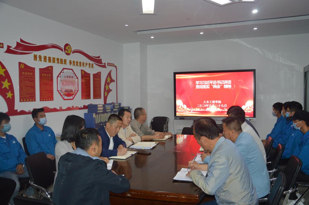 会上,土木工程学院党总支书记带领大家学习了全国两会期间习近平总书记发表的一系列重要讲话,提出的新思想、新观点、新要求。