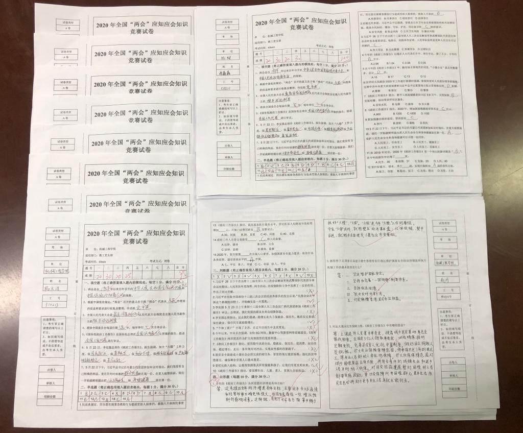自5月22日,第十三届全国人民代表大会第三次会议和中国人民政治协商会议第十三届全国委员会第三次会议开幕以来,机械工程学院教工党支部先后组织支部党员在线观看了开幕式,进行了政府工作报告解读,开展了“凝心聚力决胜攻坚 聚焦2020 全国两会”主题党日等系列学习教育活动。为检验支部党员的学习成效和质量,进一步推进“2020全国两会精神”学习走向深入,教工党支部于6月1日成立了“2020全国两会精神”理论学习考核小组,考核小组于6月1日至4日对党员的线上、线下学习情况进行了考核评比,具体包括学习强国、甘肃党建网络平台学习情况,2020全国两会应知应会知识掌握情况等。经过公平、公正、公开的考核评比,最终评选出了学习强国平台学习优秀奖6名、甘肃党建平台学习优秀奖6名、“两会知识知多少”应知应会知识竞赛优秀奖6名。