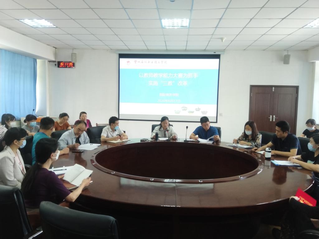 6月17日,国际商务学院在东主教二楼圆桌会议室组织开展以教师教学能力大赛为抓手、促进 “三教”改革为主题的教师教学能力提升活动,学院领导班子及全体教职工参加了活动。