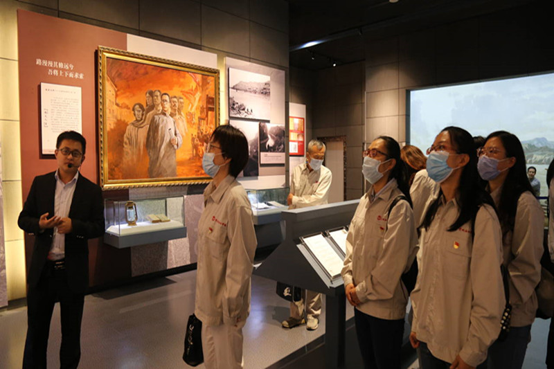 参加活动的全体教职工党员列队来到张一悟纪念馆,在英雄烈士雕塑前敬献了花篮,向英雄烈士鞠躬致敬。接着,面向鲜红的党旗,吴海霞带领大家举起右手重温入党誓词,缅怀长眠于此的革命先烈。随后,大家在解说员的讲解中,通过实物、展板、场景、油画、影像资料等进一步了解了张一悟同志生平事迹和榆中革命斗争史,深切感受了革命先辈的红色精神,受到了深刻的教育洗礼。