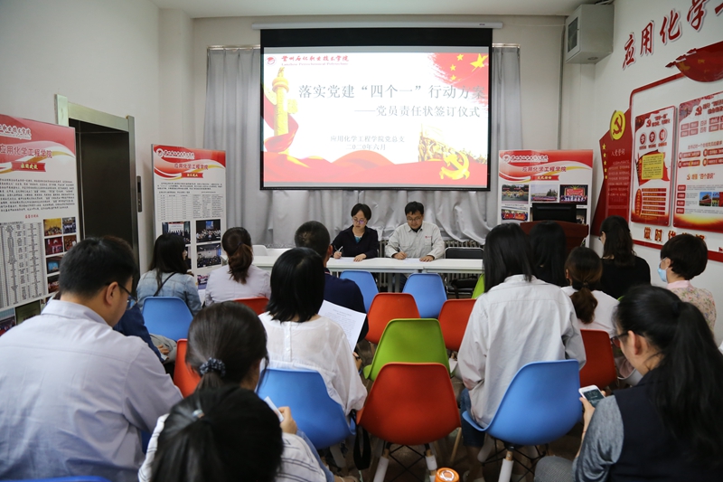 5月22日下午,应用化学工程学院党总支在学院“党员之家”举办“在常态化疫情防控中教职工党员责任状”签订仪式,学院全体教职工党员参加仪式。