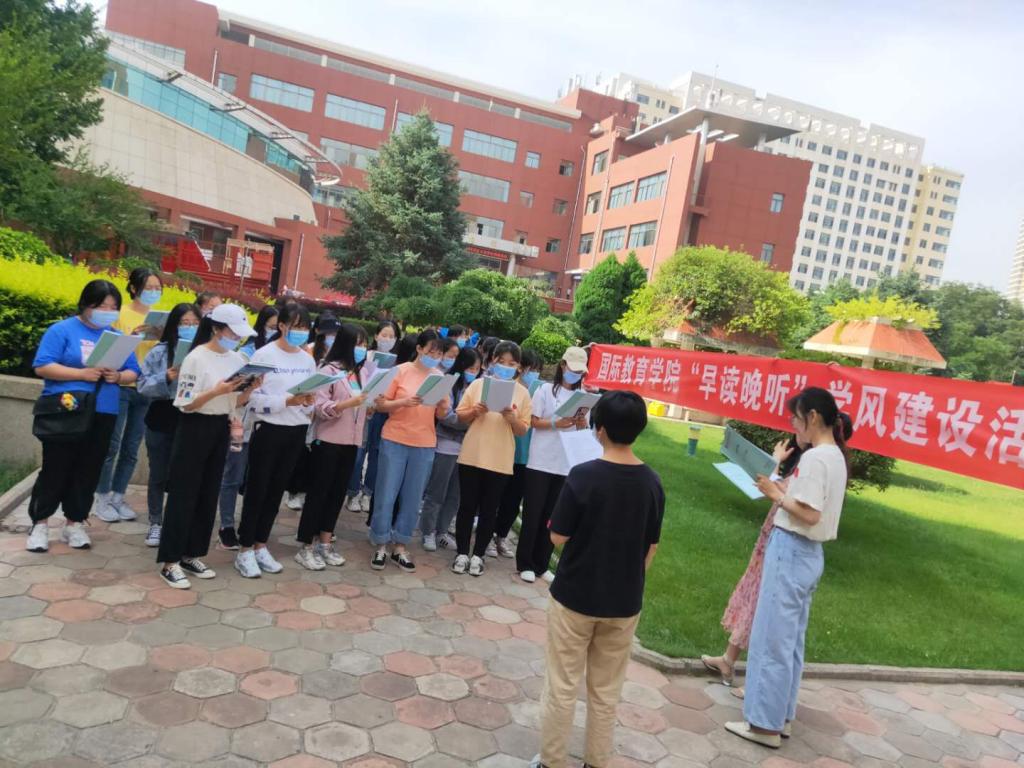 立身以立学为先,立学以读书为本。近日,国际教育学院积极组织师生进行“早读晚听”学风建设系列活动。学院要求各班级按照实际情况制定详细工作安排,班主任组织学生按计划实施,师生当天对“早读晚听”学风建设活动进行总结交流,梳理存在问题,不断改进工作。