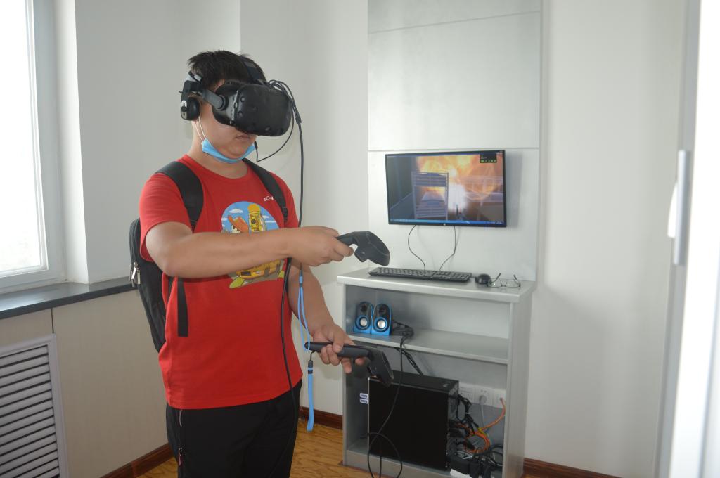 7月1日下午,利用我校施工技术VR室虚拟仿真设备,组织学生身临其境的体验模拟事故现场,开展互动启发式安全教育。活动中,同学们戴上VR头盔,手握操作手柄,通过正确的“拔、握、扫、瞄”灭火器使用方法,扑灭火苗,然后撤离现场;体验到地震发生时候的摇晃,学会如何进行逃生;结合学院顶岗实习学生即将奔赴工地进行实习,同学们在虚拟的施工场景中“亲历”施工过程中可能发生的基坑坍塌、高空坠落、物体打击、触电伤害等工程事故。